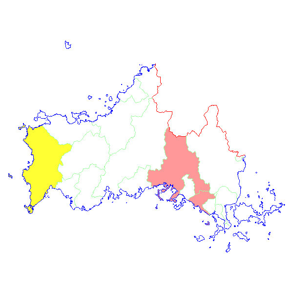 山口県・市町村毎 報告数日本地図 > 山口県