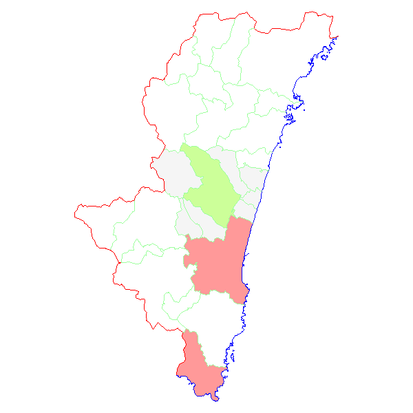 宮崎県・市町村毎 報告数日本地図 > 宮崎県