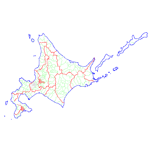 北海道・市町村毎 報告数日本地図 > 北海道