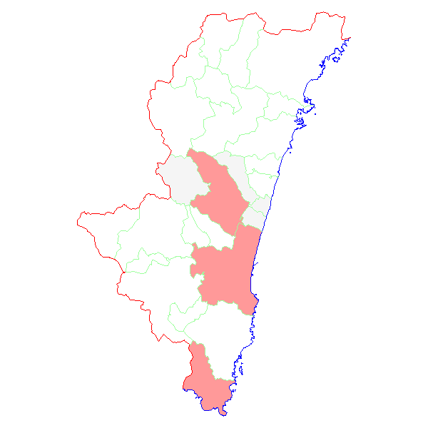 宮崎県・市町村毎 報告数日本地図 > 宮崎県