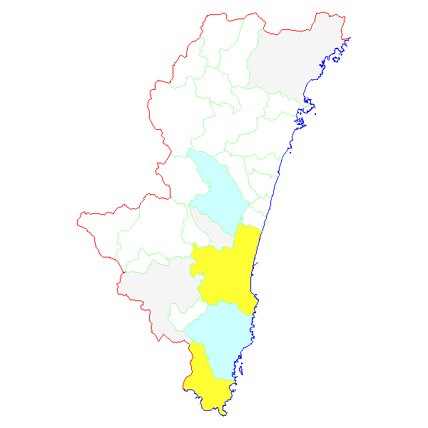 宮崎県・市町村毎 報告数日本地図 > 宮崎県