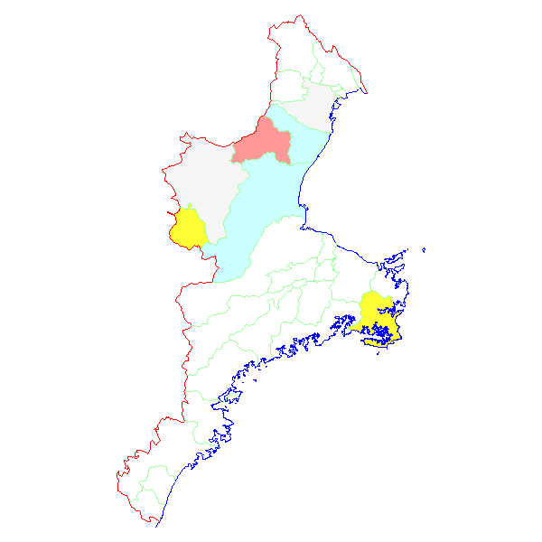 三重県・市町村毎 報告数日本地図 > 三重県