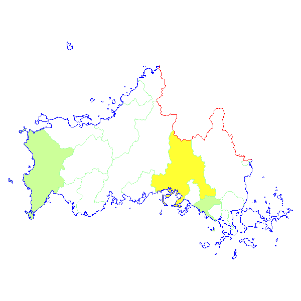 山口県・市町村毎 報告数日本地図 > 山口県