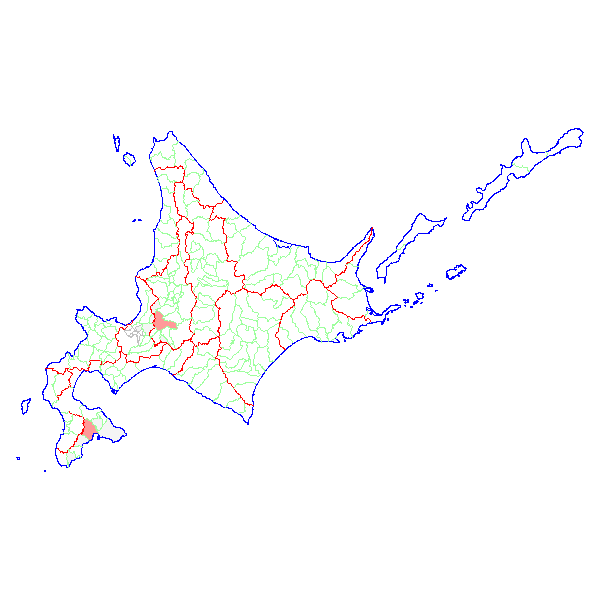 北海道・市町村毎 報告数日本地図 > 北海道