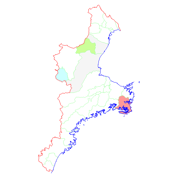 三重県・市町村毎 報告数日本地図 > 三重県