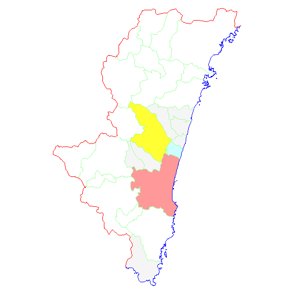 ■ 2005-02-07より2005-02-13までの宮崎県における市町村毎の報告地図