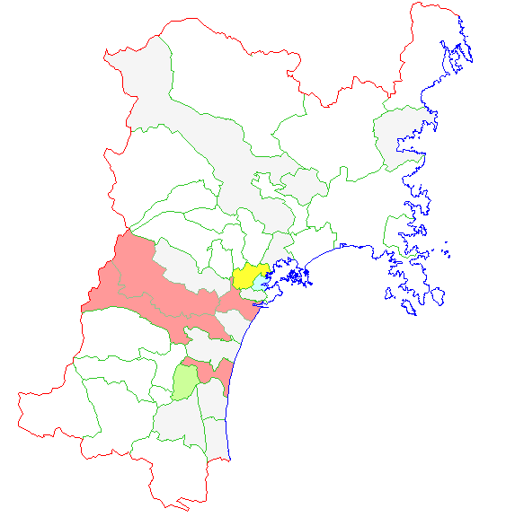 ■ 2005-02-21より2005-02-27までの宮城県における市町村毎の報告地図
