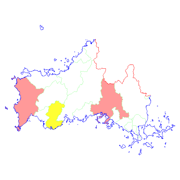 ■ 2005-03-14より2005-03-20までの山口県における市町村毎の報告地図