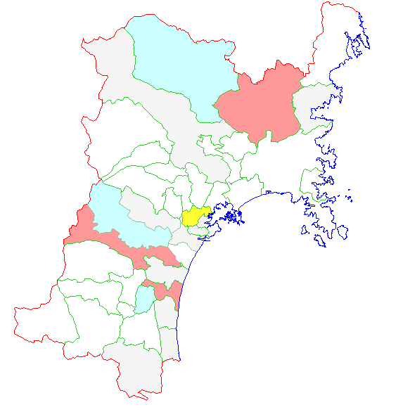 ■ 2006-01-23より2006-01-29までの宮城県における市町村毎の報告地図