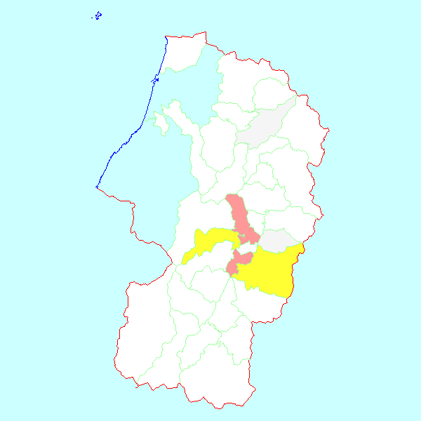 ■ 2008-02-02より2008-02-08までの山形県における市町村毎の報告地図