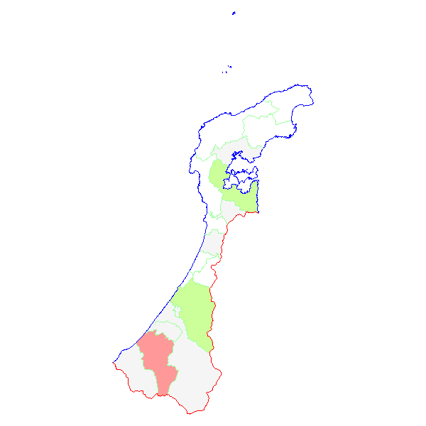 ■ 2008-03-02より2008-03-08までの石川県における市町村毎の報告地図