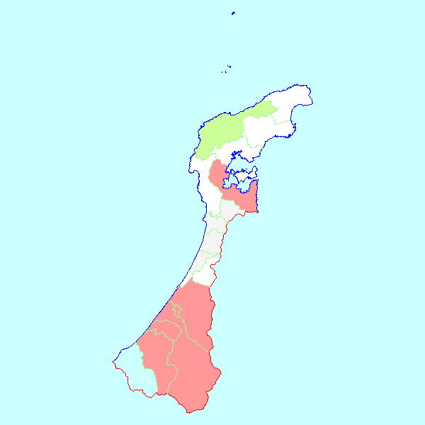 ■ 2009-03-01より2009-03-07までの石川県における市町村毎の報告地図
