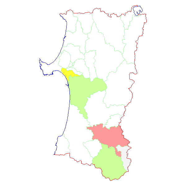 ■ 2009-04-18より2009-04-24までの秋田県における市町村毎の報告地図
