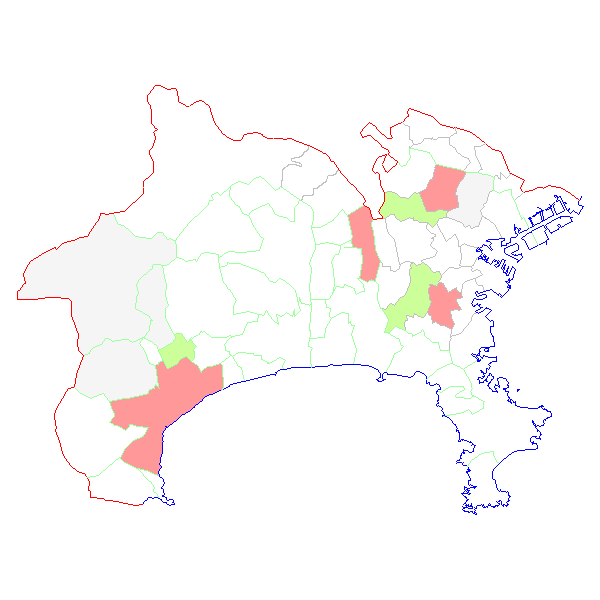 ■ 2009-12-06より2009-12-12までの神奈川県における市町村毎の報告地図