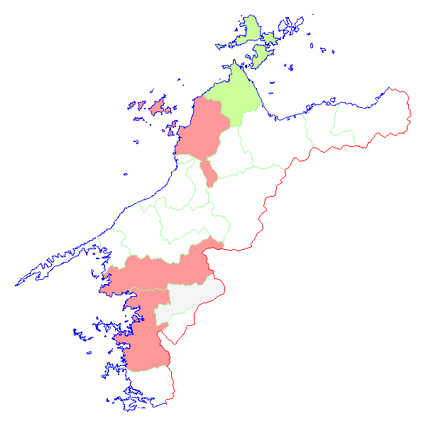 ■ 2011-01-31より2011-02-06までの愛媛県における市町村毎の報告地図
