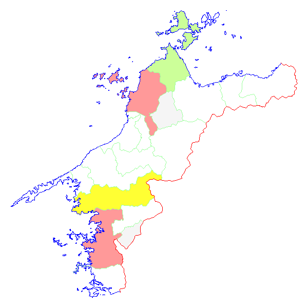 ■ 2011-02-07より2011-02-13までの愛媛県における市町村毎の報告地図