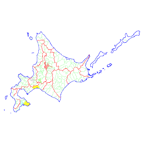 ■ 2011-03-07より2011-03-13までの北海道における市町村毎の報告地図
