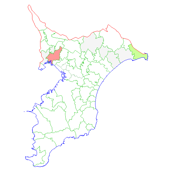 ■ 2011-03-07より2011-03-13までの千葉県における市町村毎の報告地図