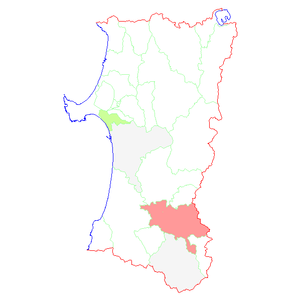 ■ 2011-03-12より2011-03-18までの秋田県における市町村毎の報告地図