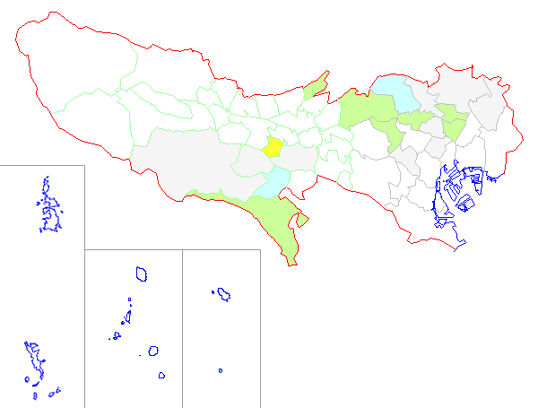 ■ 2011-03-14より2011-03-20までの東京都における市町村毎の報告地図