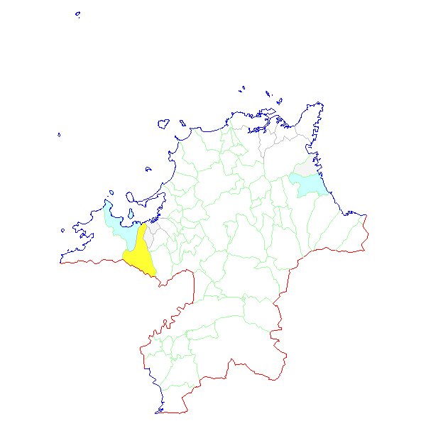 ■ 2011-03-14より2011-03-20までの福岡県における市町村毎の報告地図