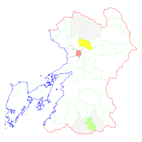 ■ 2011-03-14より2011-03-20までの熊本県における市町村毎の報告地図