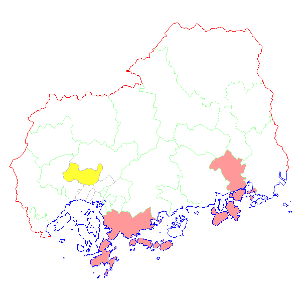 ■ 2011-03-21より2011-03-27までの広島県における市町村毎の報告地図