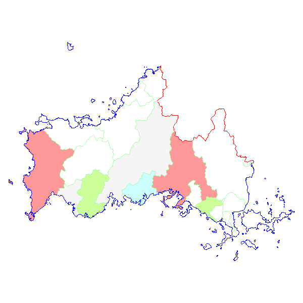 ■ 2011-03-21より2011-03-27までの山口県における市町村毎の報告地図