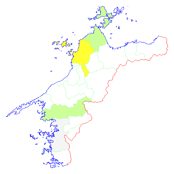 ■ 2011-04-04より2011-04-10までの愛媛県における市町村毎の報告地図