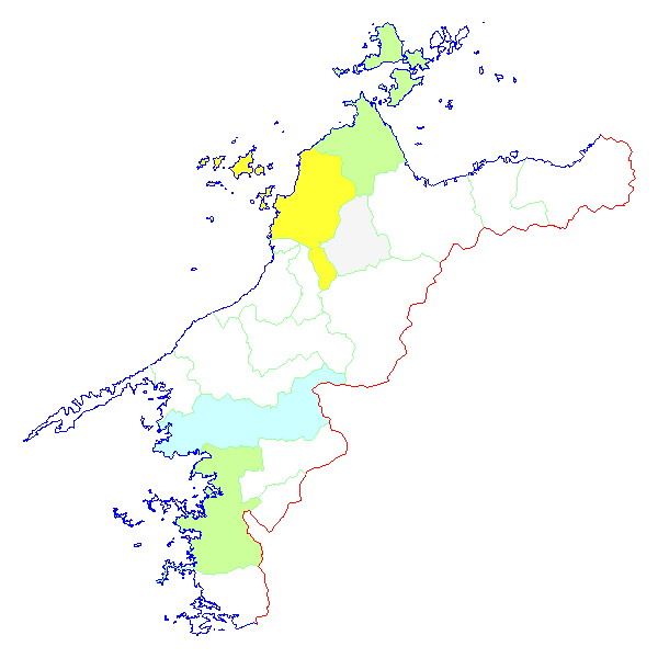 ■ 2012-01-09より2012-01-15までの愛媛県における市町村毎の報告地図
