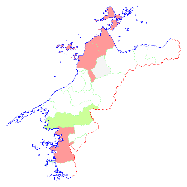 ■ 2012-01-16より2012-01-22までの愛媛県における市町村毎の報告地図