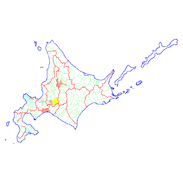 ■ 2012-01-30より2012-02-05までの北海道における市町村毎の報告地図