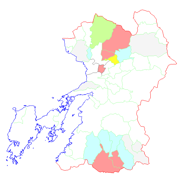 ■ 2012-02-06より2012-02-12までの熊本県における市町村毎の報告地図