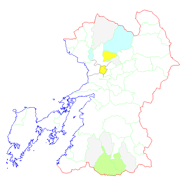 ■ 2012-03-10より2012-03-16までの熊本県における市町村毎の報告地図