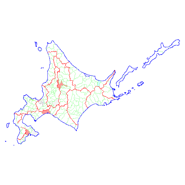 ■ 2012-03-12より2012-03-18までの北海道における市町村毎の報告地図