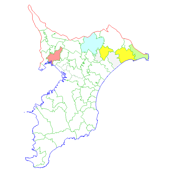 ■ 2012-03-12より2012-03-18までの千葉県における市町村毎の報告地図