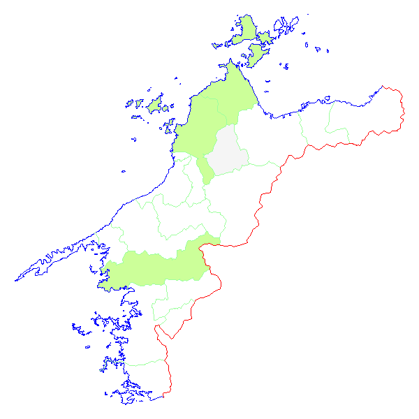 ■ 2012-03-19より2012-03-25までの愛媛県における市町村毎の報告地図