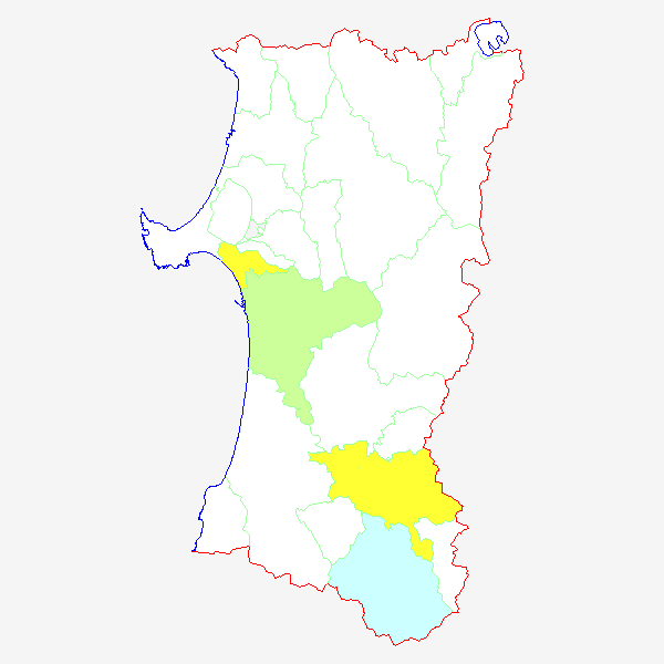 ■ 2012-03-19より2012-03-25までの秋田県における市町村毎の報告地図