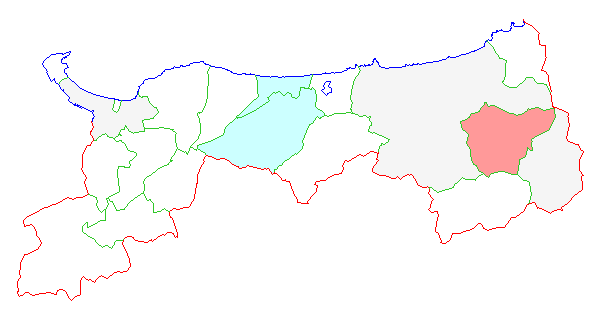 ■ 2012-04-08より2012-04-14までの鳥取県における市町村毎の報告地図