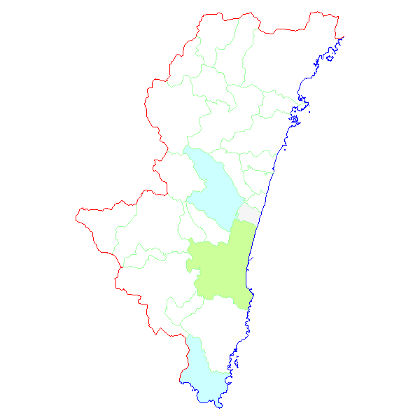 ■ 2012-04-09より2012-04-15までの宮崎県における市町村毎の報告地図