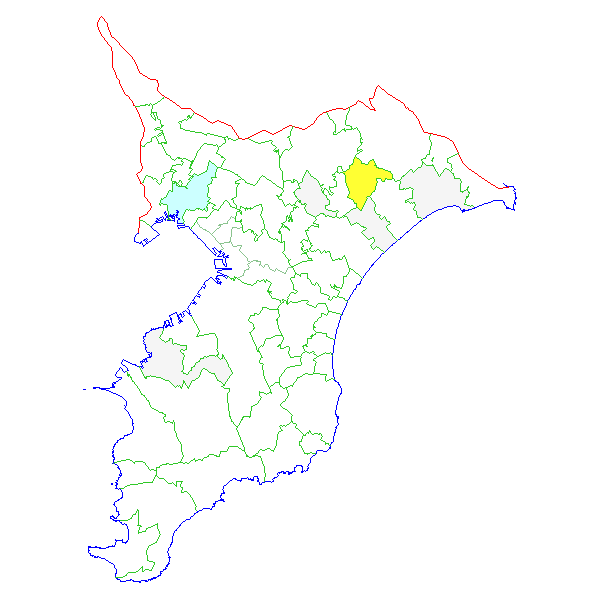 ■ 2012-12-01より2012-12-07までの千葉県における市町村毎の報告地図