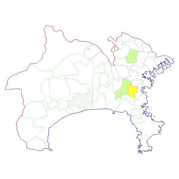 ■ 2013-01-06より2013-01-12までの神奈川県における市町村毎の報告地図