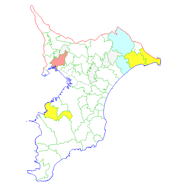 ■ 2013-01-12より2013-01-18までの千葉県における市町村毎の報告地図