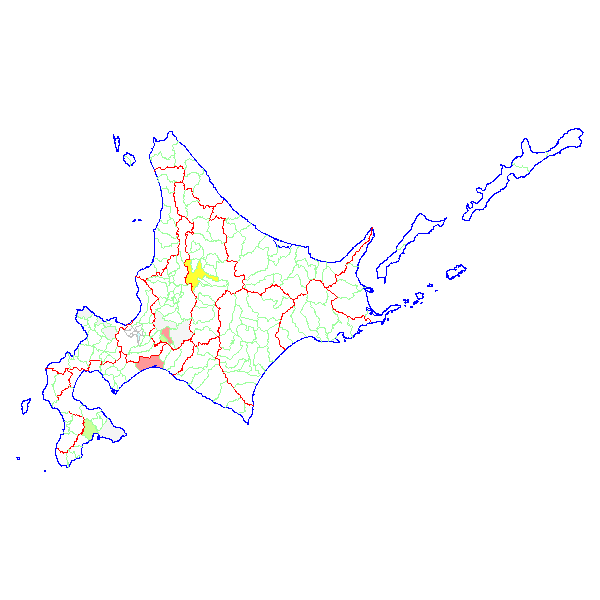 ■ 2013-01-13より2013-01-19までの北海道における市町村毎の報告地図