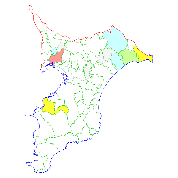 ■ 2013-01-13より2013-01-19までの千葉県における市町村毎の報告地図