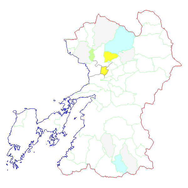 ■ 2013-01-13より2013-01-19までの熊本県における市町村毎の報告地図