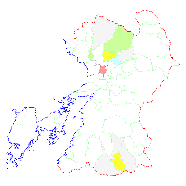 ■ 2013-01-19より2013-01-25までの熊本県における市町村毎の報告地図