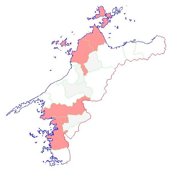 ■ 2013-01-20より2013-01-26までの愛媛県における市町村毎の報告地図