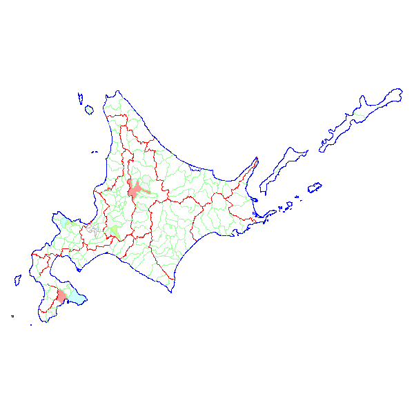 ■ 2013-02-03より2013-02-09までの北海道における市町村毎の報告地図