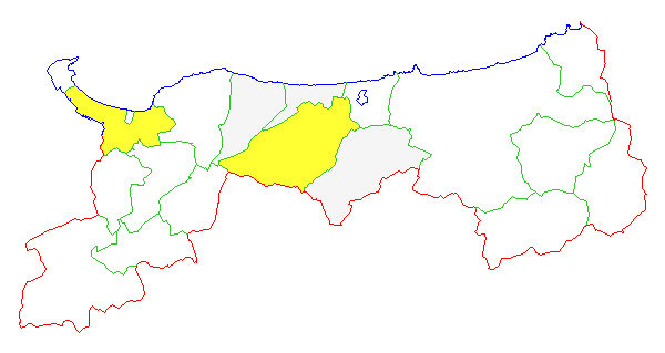 ■ 2013-02-03より2013-02-09までの鳥取県における市町村毎の報告地図